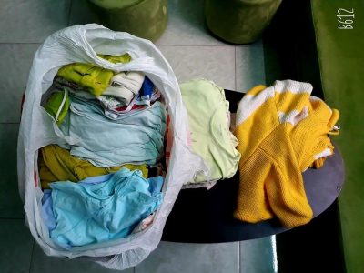 Sáng nay có một chị mang một bịch to đùng qua văn phòng của hội Nụ Cười Nhân Ái, chị nói là ”các em gửi đến người cần nó giúp chị nhé!”. Khi chị về rồi, mở ra thì đó là quần áo của trẻ em, chắc là của con của chị. Nhìn quần áo vẫn còn mới, đặt biệt là rất sạch sẽ và rất thơm. Chắc là bé mặc không vừa nên chị quyên góp cho hội để đưa đếm những người thật sự cần đến những bộ quần áo này. Dù sau thì cũng rất cảm ơn chị.